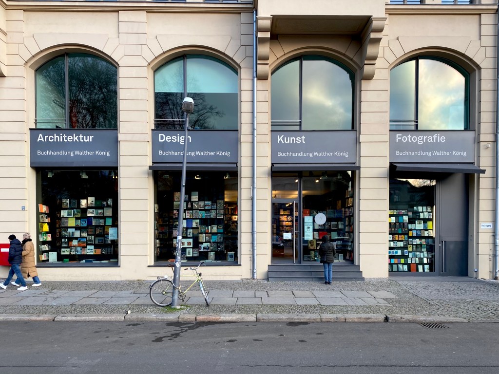 In Berlin that is the bookshop. This is seen here as a ‘spiritual gas station’, in addition to the drugstore and the supermarkets for other food. Of course heavily criticized, because why not the hardware store? And you can still order them, right? Anyway, I was a little moved when I saw the warmly lit windows of the Walther König bookstore. A haven in the chilly deserted city.