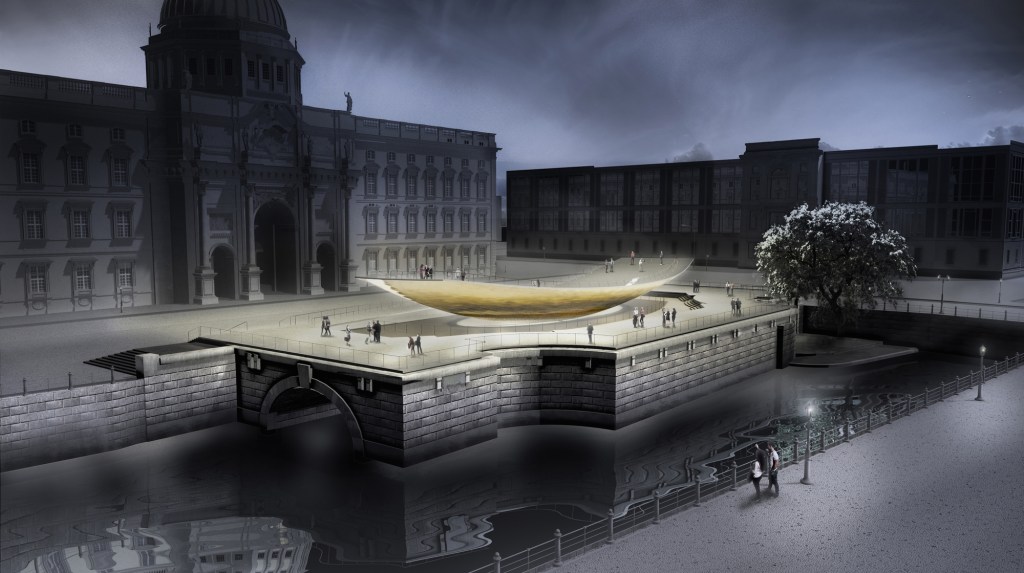 A monument! The competition to erect a monument in honor of the brave citizens who contributed to the wall’s fall without bloodshed. The location was clear: on the foundation that remained of the enormous monument in honor of Kaiser Wilhelm I, located in the waters of the Spree.