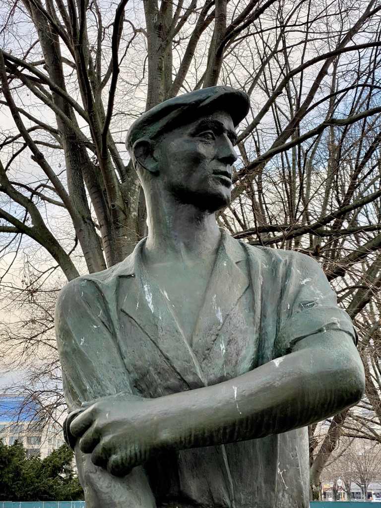 Ook een sculpturaal cliché, maar ik houd er wel van: standvastig, goeie kop, handen uit de mouwen, en een houweel.