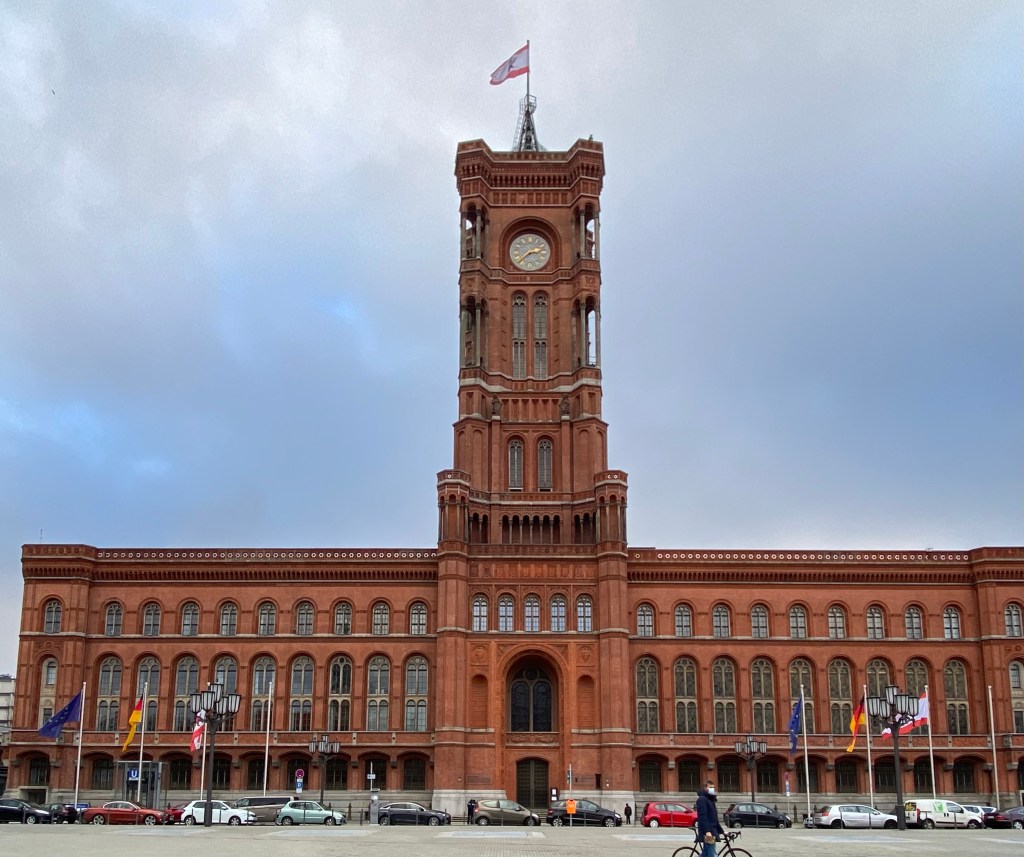De werkkamer bevindt zich aan de voorkant van wat ‘Das Rote Rathaus’ heet.