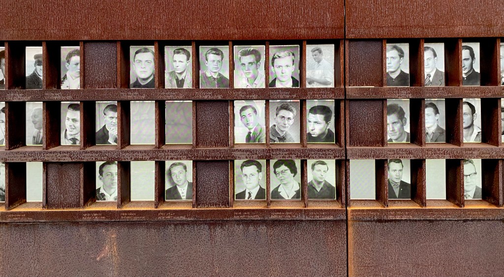 Een paar dagen later was er al weinig meer te wandelen; hoe amateuristisch ook, de grens was getrokken en wie erover ging liep gevaar. Gewoon midden door je straat, waar je vrienden en familieleden aan de overkant woonden, waar je boodschappen deed en naar het café ging. Het blijft iets on-voor-stel-baars. Maar het gebeurde en iedereen zag hoe een lullig stenen muurtje een uitgekiend terreur apparaat werd. Met steeds venijniger maatregelen, bewakers, wachttorens, mijnen, honden en automatische machinegeweren. Sperrgebiet.