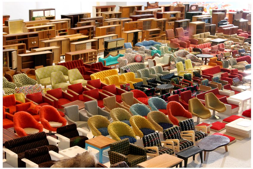 En wát voor een meubels. Ah, dat moet geobsedeerd verzamelen geweest zijn, alle e-bays en marktplaatsen maanden- of jarenlang afgestruind, zo stel ik me voor.