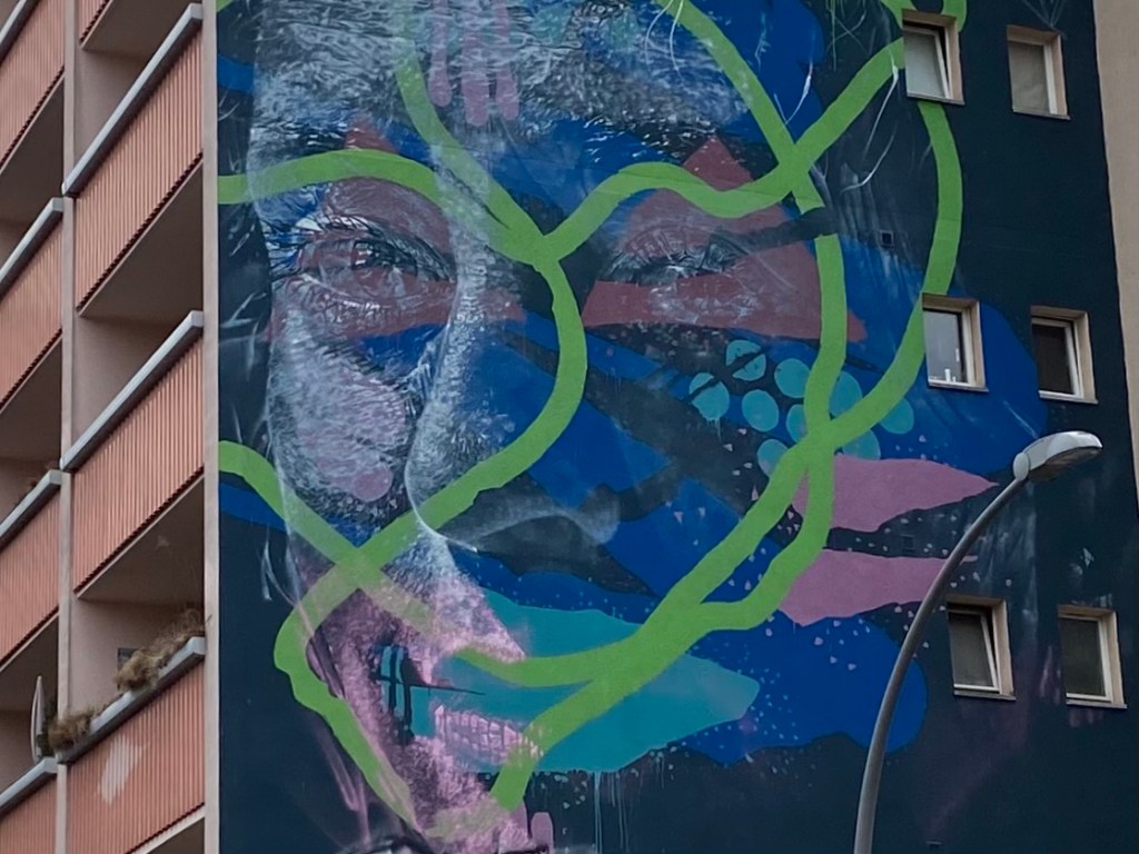 The still life is no longer there. On the wall is one of the many murals in Berlin, all of which I find equally out of place and annoying.