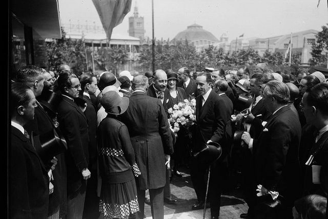 Ludwig Mies van der Rohe (with stick) at the opening of the pavilion at the Barcelona World’s Fair (1929)