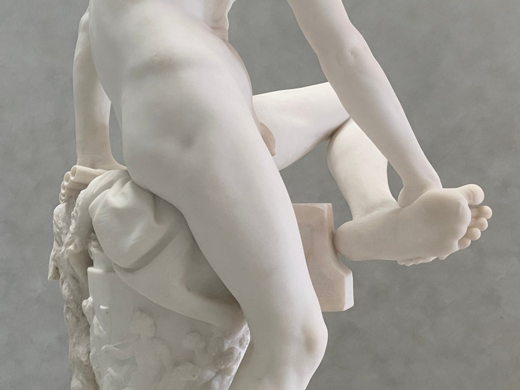 Het is schatplichtig aan Lo Spinario dat vaak is gekopieerd. Het kleine bronzen beeld in Rome, van 200 voor Christus, van de jongen die een doorn uit zijn voet haalt.