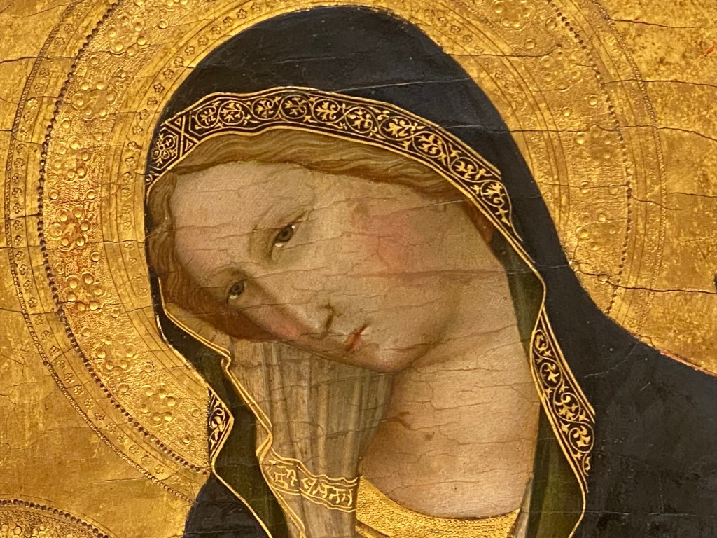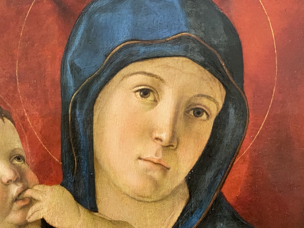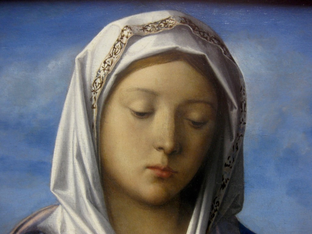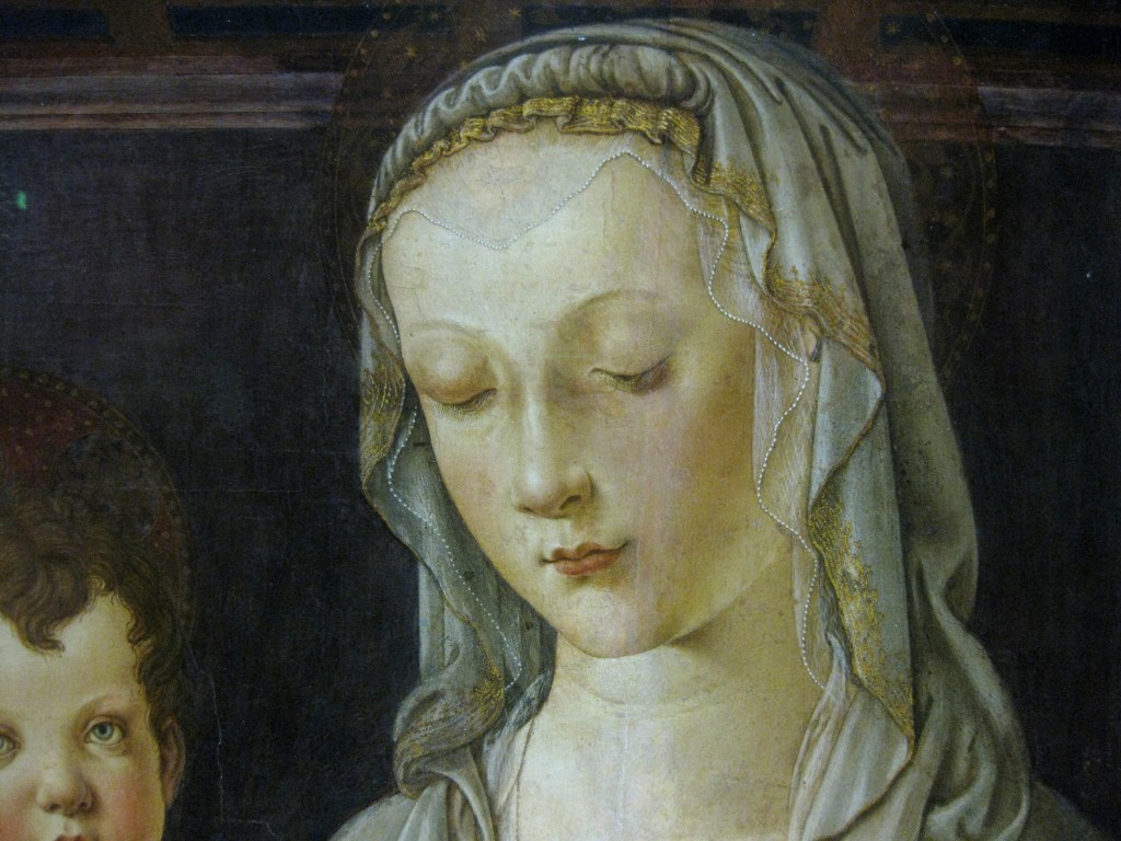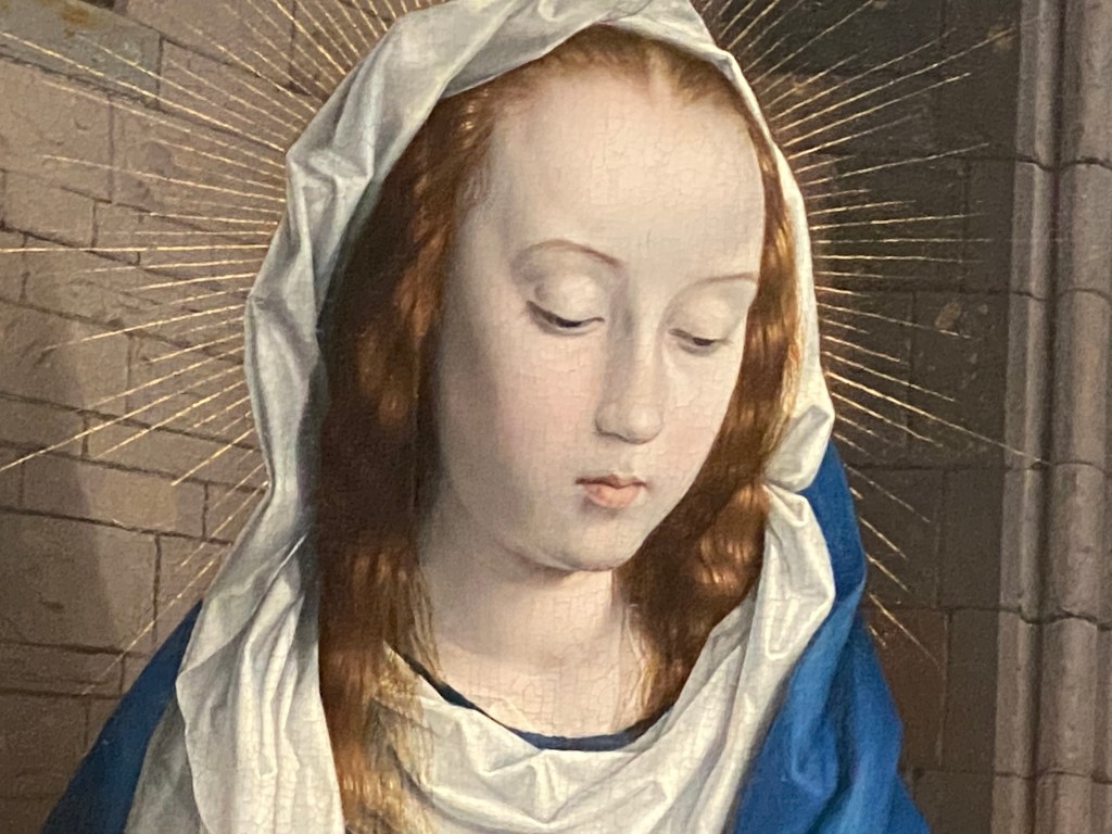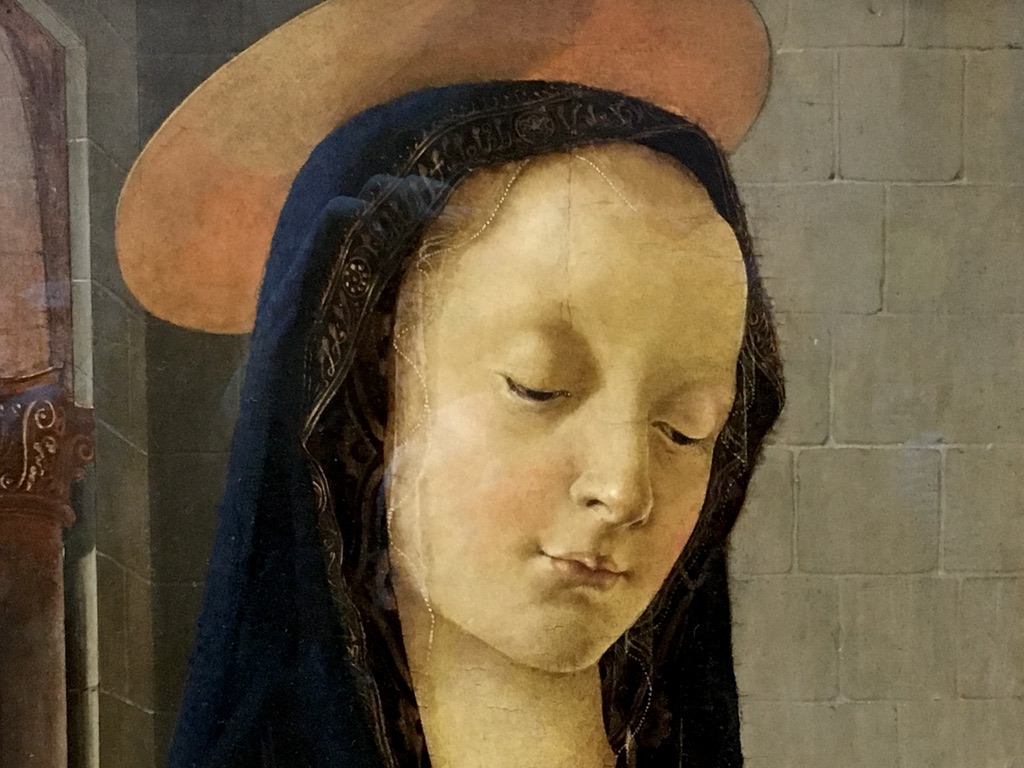 Maria lacht nooit, er is heel soms een vertederde glimlach die om haar lippen speelt. Haar ogen zijn in de meeste gevallen geloken en ze kijkt ons zelden aan. Het is een mengeling van aarzelende berusting, van zorg en ingehouden verdriet om wat komen gaat. Ik heb nog nooit een gelukkige Maria gezien, geen blije moeder met de pasgeboren zoon in haar armen. Dat begint al bij haar afwerende houding als de engel Gabriël bij de annunciatie komt vertellen dat ze onbevlekt zwanger zal worden van de zoon van God. En dat is goed te begrijpen. Je kunt haar bezorgde blik misschien ook verklaren door het voorvoelen, dat ze voorvoelt hoe het zal gaan eindigen. En dat het een zwaar leven zal zijn. Die wijze van afbeelden is dezelfde door de eeuwen heen, dezelfde iconografie in de Byzantijnse mozaïeken, de meeste iconen, en van de vroege Middeleeuwen tot in de late Renaissance.