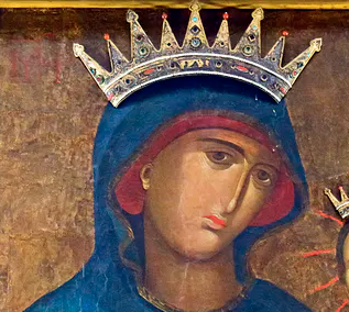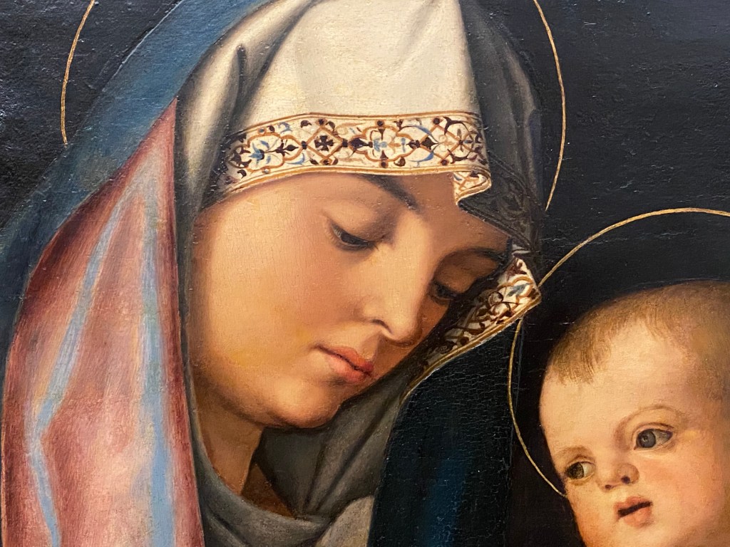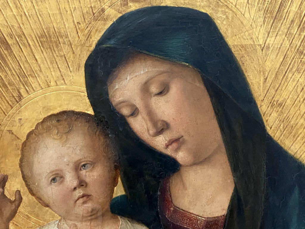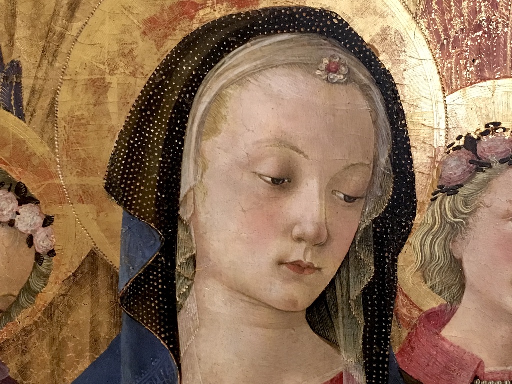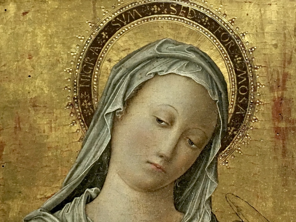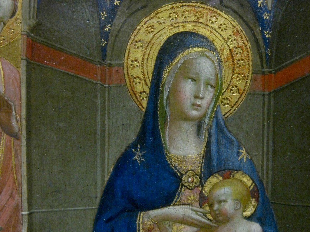 Maria lacht nooit, er is heel soms een vertederde glimlach die om haar lippen speelt. Haar ogen zijn in de meeste gevallen geloken en ze kijkt ons zelden aan. Het is een mengeling van aarzelende berusting, van zorg en ingehouden verdriet om wat komen gaat. Ik heb nog nooit een gelukkige Maria gezien, geen blije moeder met de pasgeboren zoon in haar armen. Dat begint al bij haar afwerende houding als de engel Gabriël bij de annunciatie komt vertellen dat ze onbevlekt zwanger zal worden van de zoon van God. En dat is goed te begrijpen. Je kunt haar bezorgde blik misschien ook verklaren door het voorvoelen, dat ze voorvoelt hoe het zal gaan eindigen. En dat het een zwaar leven zal zijn. Die wijze van afbeelden is dezelfde door de eeuwen heen, dezelfde iconografie in de Byzantijnse mozaïeken, de meeste iconen, en van de vroege Middeleeuwen tot in de late Renaissance.
