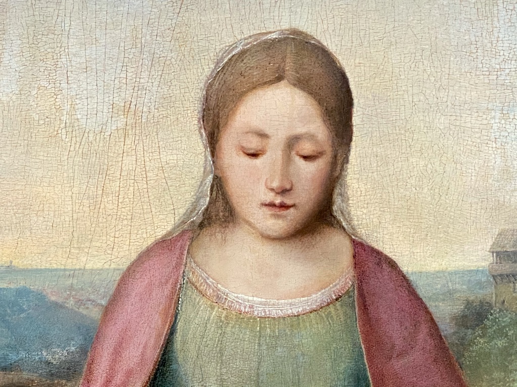 Maria never smiles, sometimes there is an endearing smile that plays around her lips. Her eyes are closed in most cases, she rarely looks at us. It is a mixture of hesitant resignation, of worry and restrained grief about what is to come. I have never seen a happy Mary, not a happy mother with the newborn son in her arms. This already begins with her defensive attitude when the angel Gabriel comes to tell her at the annunciation that she will conceive immaculate with the son of God. And who wouldn’t be. You can mainly explain her worried look by the foreboding, that she foresees how it will end. And that it will be a tough life. The same way of representation has been there through the ages, the same iconography in the Byzantine mosaics, most of the icons, and from the early Middle Ages on to the late Renaissance.