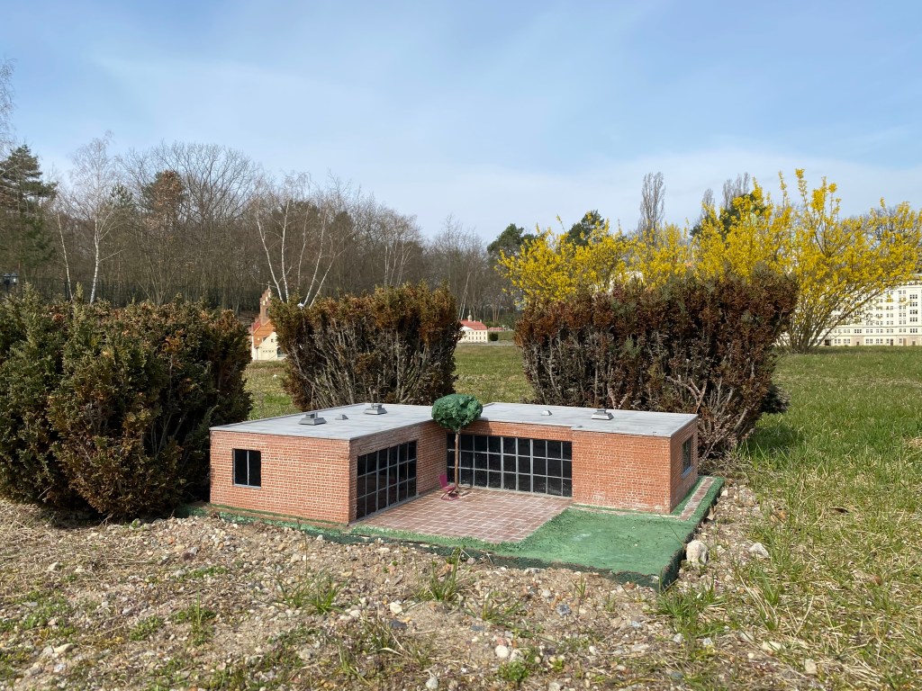 I went to look it up today, just before it has to close again. It enjoys a fantastic location on a small lake, the Obersee, in the Hohenschönhausen district. It is modest and pleasant in proportions; you would like move in, like this. After the war, the area around the house became a prohibited area; completely taken up by the nearby Ministerium für Staatssicherheit. The garden became a parking lot, the house a laundry. You can still see traces of an extra window in the brick wall. It is now a renovated monument.