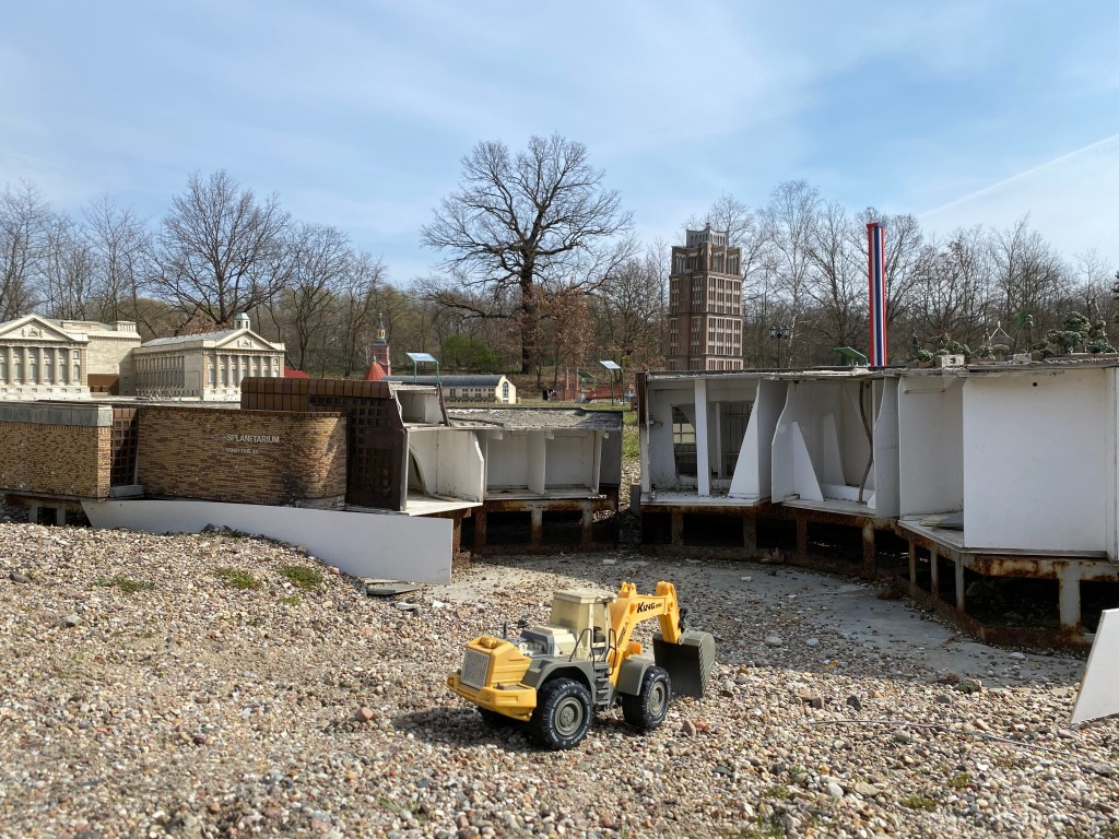 Dit vond ik zo grappig. Het Zeissplanetarium was ingestort, en dan plaatsen ze er wat bouwmateriaal en dragliners bij, redelijk op schaal, totdat er weer geld en tijd is om het op te knappen. Werk in uitvoering!