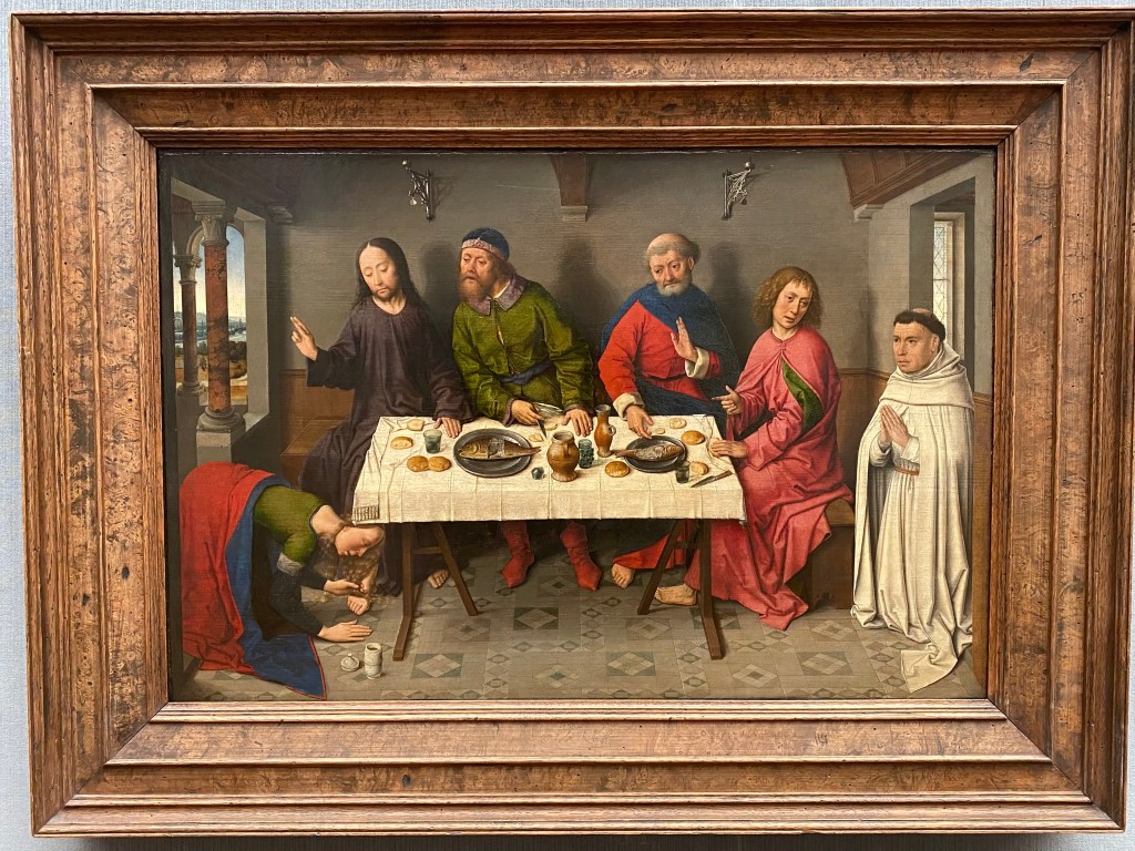 Now I see horses everywhere, because I decided in a completely intuitive way that there should be a horse in the room I was drawing. And then in another work I painted a tile floor that almost made me cry of surprise when I came across a similar floor in a very small, beautiful painting by Dieric Bouts, in the Gemäldegalerie. Christ visiting Simon, with tasty fish on the tin plates. When I got home I saw that he placed the same red next to that blue-green-gray of the floor.