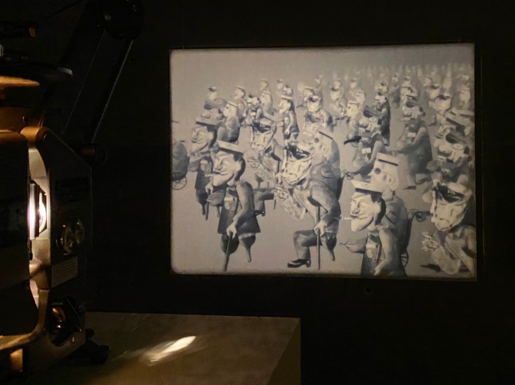 And then today Redemption Now, a major exhibition of the work of Yael Bartana, opened in the Jewish Historical Museum. It started with Entartete Kunst Lebt, an animation film from 2010. A five-minute wry and penetrating film made up of figures that appear in the painting Kriegskrüppel, by Otto Dix (1920). The painting itself was destroyed as ‘entartet’, but fortunately, an etching was also made of it that she used.